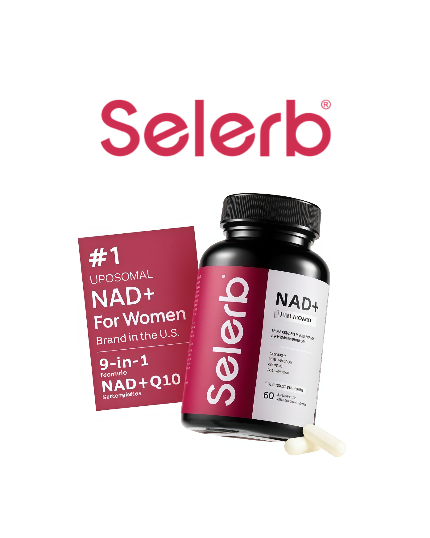 Selerb NAD+ for Women delivers 8-in-1 cellular support, combining high-purity Nicotinamide Riboside (NR), CoQ10, Collagen, Grape Seed Extract, and more — all carefully selected to support mitochondrial energy, skin glow, and hormone balance.