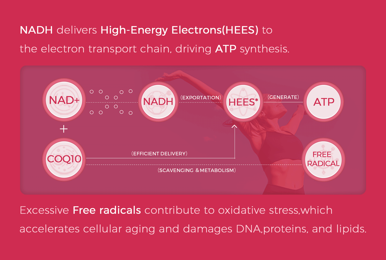 CoQ10 supports efficient electron delivery while neutralizing harmful free radicals that accelerate aging.